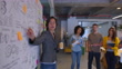 Adult woman leading a strategic business plan meeting pointing at the white board while explaining to her team - 4K stock video