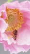 Close-up pink poppy flower with hoverfly collecting pollen on petal inside flower - HD stock video