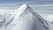 Wide shot flying towards a snowcapped mountain peak in Denali National Park, Alaska. Filmed from a helicopter with a gyro stabilized Cineflex system.