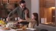 Happy single father and daughter cooking lunch in the kitchen. - 4K stock video