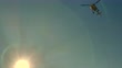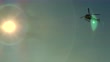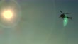 Helicopter Flying Against the Sun with Clear Blue Sky and Mountain - 4K stock video