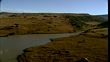 AERIAL High veld with gentle slopes, scattered trees, and a lake - HD stock video