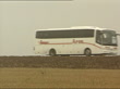 Soham murder trial: Jurors visit site where bodies found; ITN ENGLAND: Suffolk: Lakenheath: EXT LS Coach and escort, carrying judge, jurors and barristers in Soham murder trial, along thru mist as arriving at site where bodies of murdered girls, Holly Wells and Jessica Chapman were found (3 shots = 15 secs)