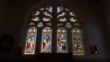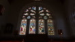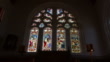Low angle zoom in shot of stained glass window in famous King's College, University Of Aberdeen