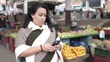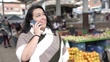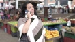 Mid adult woman talking on mobile phone on a farmer's market - 4K stock video