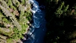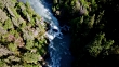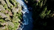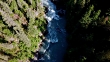 Aerial: People in a Boat River Rafting Down Rough White Water on a Sunny Day