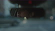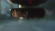 Woman driving her car home from work as the sun is about to set. We see her eyes through the rear-view mirror.